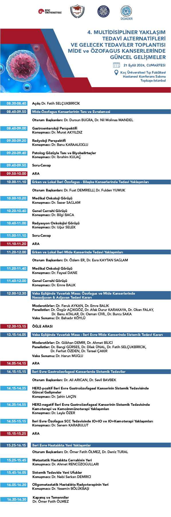 4. MULTİDİSİPLİNER YAKLAŞIM TEDAVİ ALTERNATİFLERİ VE GELECEK TEDAVİLER TOPLANTISI MİDE ve ÖZOFAGUS KANSERLERİNDE GÜNCEL GELİŞMELER
